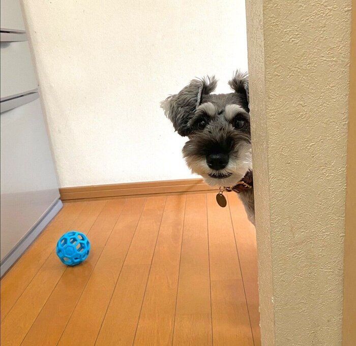 「ボールで遊ぼう」と飼い主さんを誘っていた