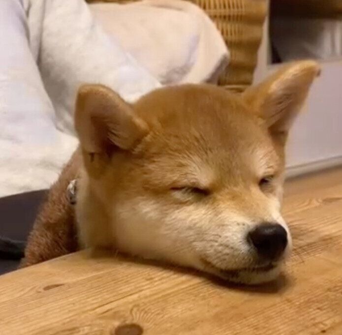 「どんなところでも寝られる犬」の特徴とは?テーブルの上にあごを乗せて“寝落ち”した柴の子犬|獣医師解説