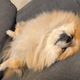 ソファでヘソ天寝をするポメラニアン!“ぺったんこ”な姿からわかる心理とその理由|獣医師解説