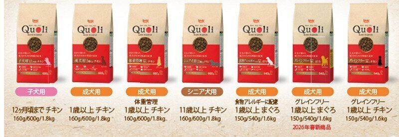 いつもは海外ブランドのフードを選びがちですが、Quoli/クオリは品質管理も徹底され、健康にも配慮しているということを知り、国産を選びたくなりました。 小粒で食べやすそうなところも良いですね。