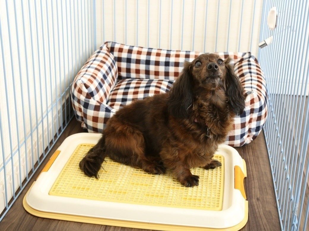 サークル内で留守番させるときは、ベッドとトイレの間隔をできるだけあけて設置しましょう。もちろん、サークルを使わない場合でも、寝床とトイレの間隔は離して設置してくださいね。