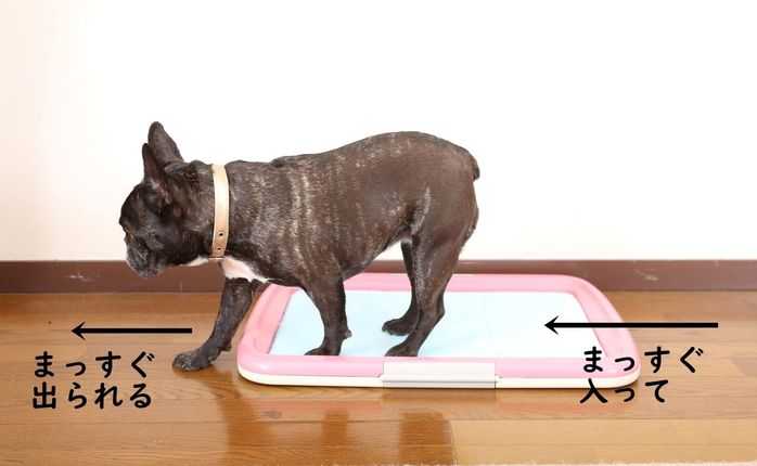 一直線で出入りできる配置にすることで、上記のような失敗を防げ、さらには排泄後に自分のウンチやオシッコを踏まずに出られるようになります。