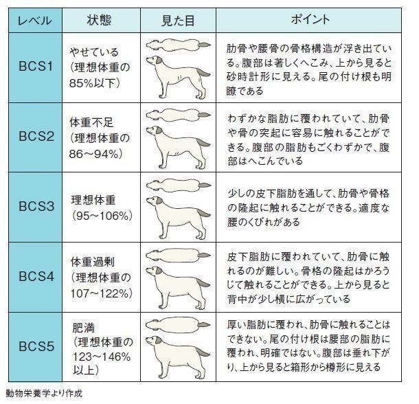 下の表を参考に、愛犬の肥満度をチェックしてみましょう。
