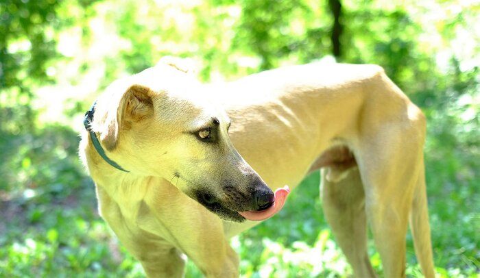 - 「お散歩のときに、猫ちゃんなどを見つけると大変。グッと引っ張ります。大型犬なので力が強いです」