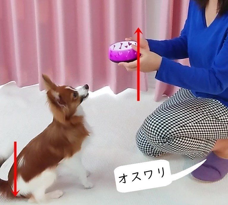 「オスワリ」は、フードボウルを高い位置に掲げて指示を!