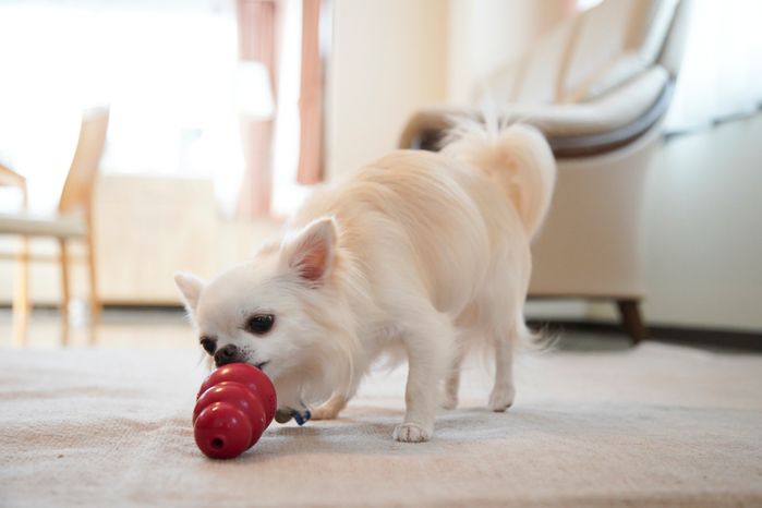 ゴム製おもちゃは、中にフードやおやつを入れて与えると夢中で遊ぶため、食事や来客中など、静かにしていてほしいときに役立つことから、デキる飼い主さんの必須アイテムになっています!