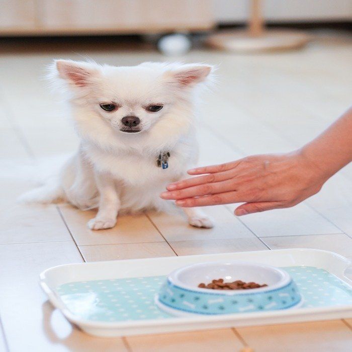 オアズケをすると、食事をじっと見て待つことを覚えてしまうため、飼い主さんを見る「アイコンタクト」の回数が減ってしまうおそれが!