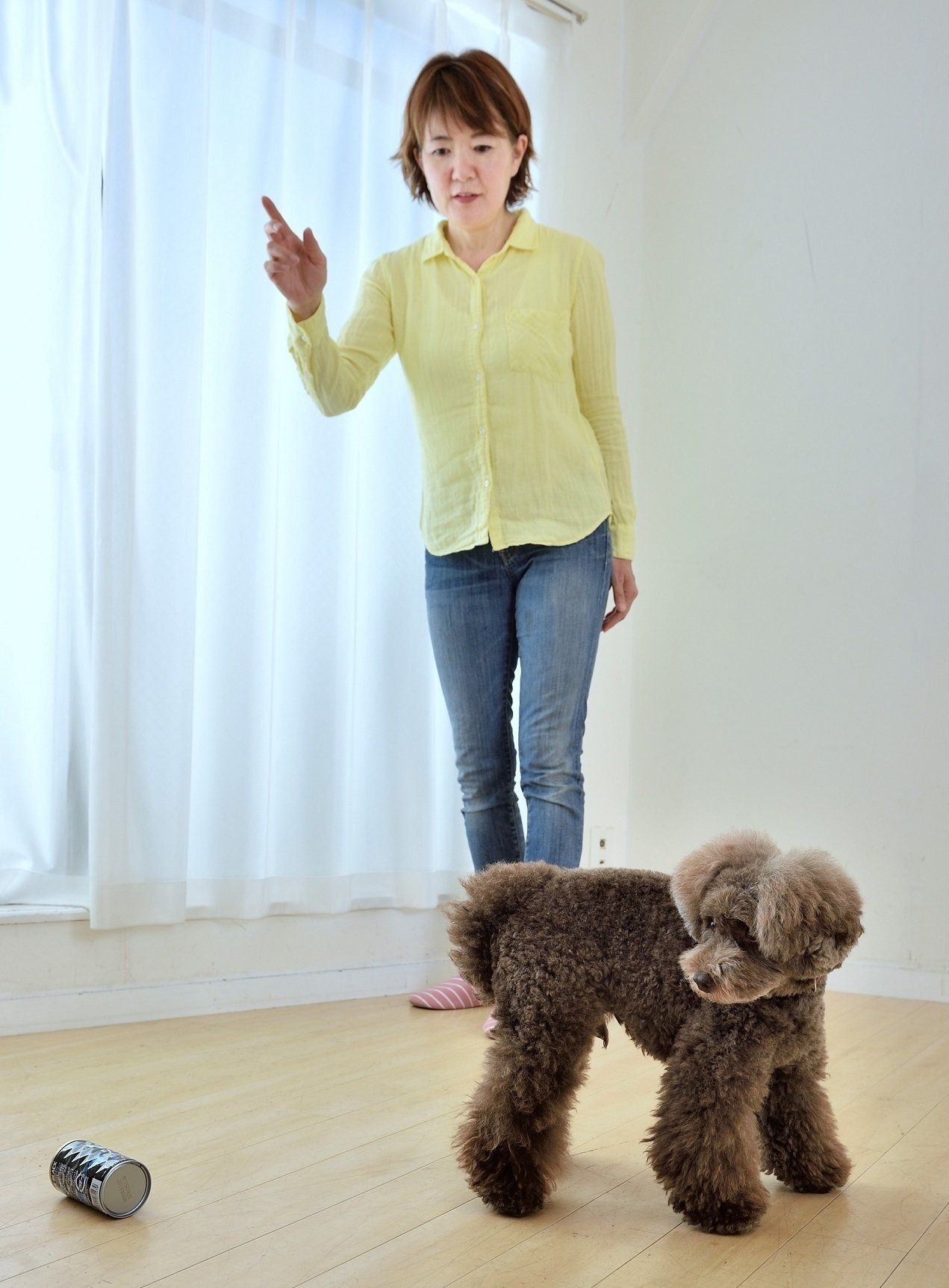 「吠える」→「急に大きな音がする(=天罰が下る)」→「吠えなくなる」という、「天罰方式」といわれる古いしつけ方なのですが、たいていうまくしつけられずに失敗するナンセンスな方法です。