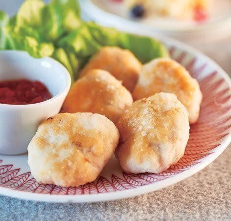 - 生鮭、モッツァレラチーズ、にんじんペーストをこねて直径8cmの丸に成型する。