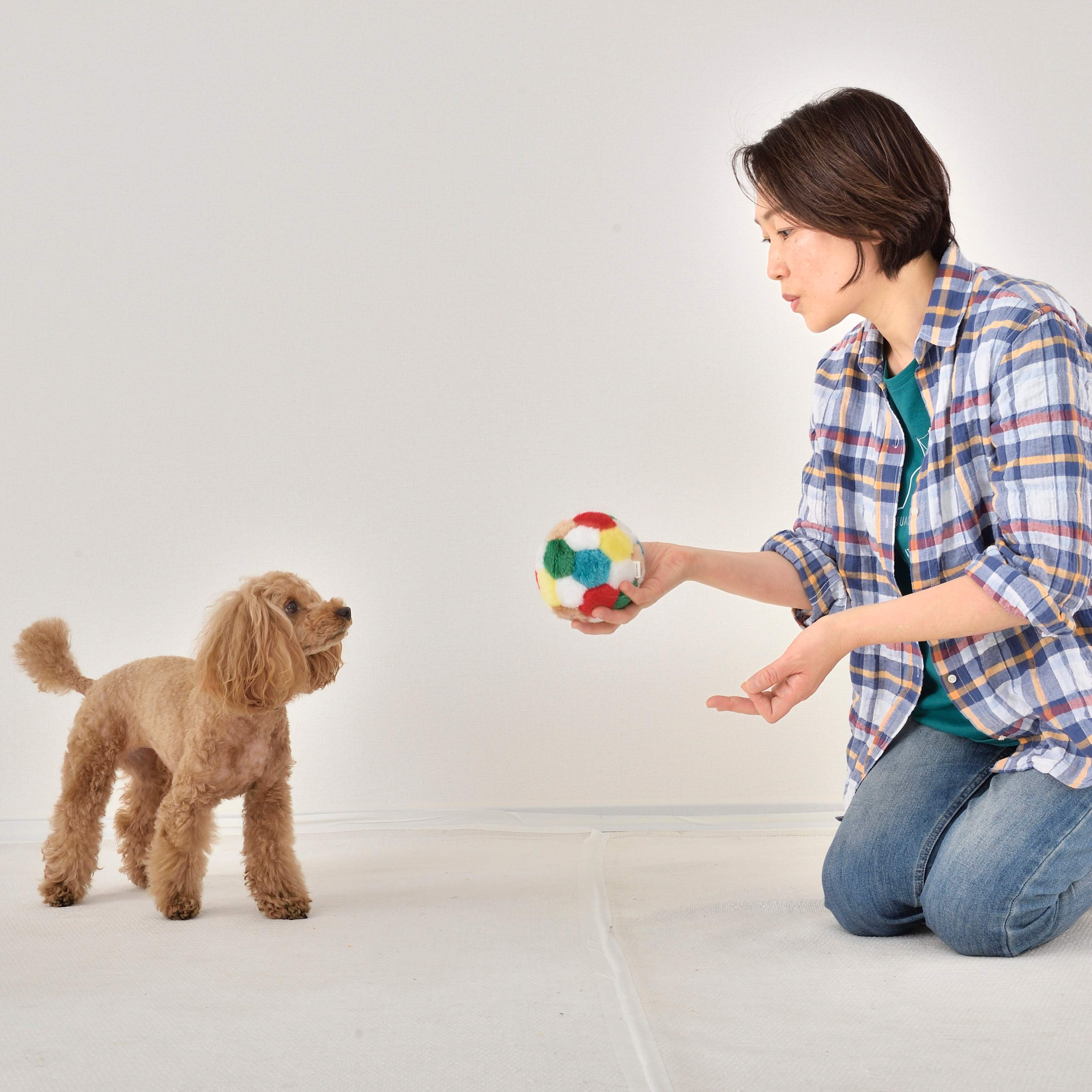 愛犬がくわえられないくらいの大きさのボールを置き、愛犬が自らアプローチするのを待ちます。ニオイをかぐ、鼻先で突く、前足で触れるなどしたら、おやつを与え、なでるなどしてほめます。これを繰り返すことで犬はボールと遊ぶことが好きになっていきます。