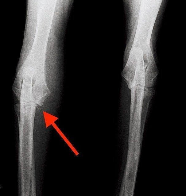そもそも犬の前足には体重の多くがかかるのに、後ろ足のひざのようなクッション機能がなく、ひじを痛めやすい傾向が。大型犬に多い病気ですが中型犬もなり、前足を引きずったり、前足を上げたりします。生後4カ月までに見つかれば進行を抑える手術をすることも。