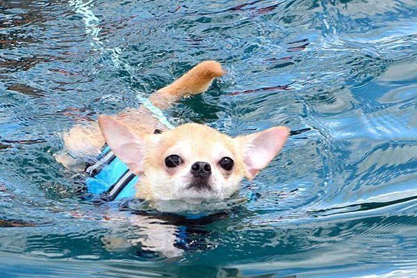 「鼻や口に水が入らないようにするワン!」と、気をつけて泳いでいるのかな?