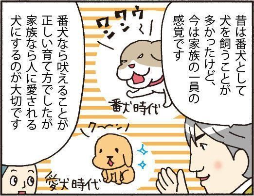 ちなみに昔は「番犬」として犬を飼う人が多かったため、現在とは正反対のしつけが一般的でした。ちょっとした物音にも吠えなければ役に立たず、場合によっては人を噛むことも……。こうした犬に育てるためには、社会化期にわざとお客さんにヒゲを引っ張ってもらうなど「いやな経験」を積ませ、飼い主さん以外の人を警戒するように訓練していたそうです。社会化期のしつけを間違えてしまうと、犬の問題行動につながることが、このことからもわかります。