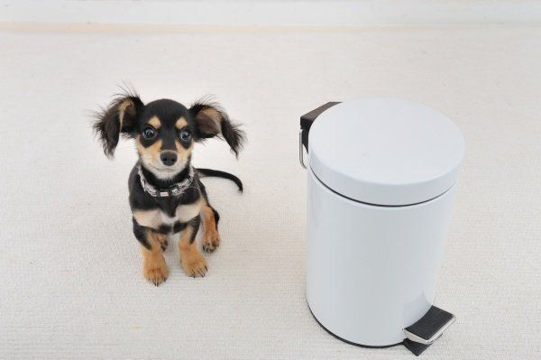 ゴミ箱をあさるなら、フタつきにするか犬が届かない場所へ
