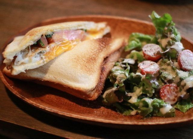 そんなに広くない古民家で和室もあるのだが、犬はソファの上でもどこでもOKになっている。なので、雨でも寒い日でも、安心して犬連れで入れる。また、珈琲などの飲み物だけでなく、ランチも美味しい。私のオススメはホットサンドとひき肉カレーだが、オムライスもあるので、いつもわりと悩む。
