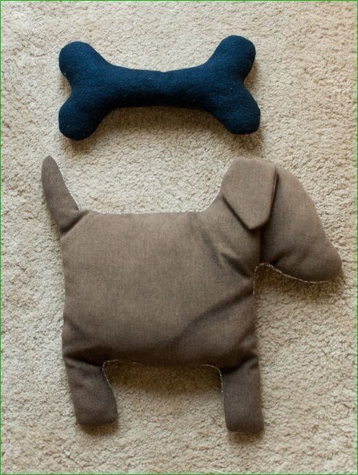 「おもちゃは、余り生地で作ったりして楽しんでいます。なので、ボーン形おもちゃも犬クッションも表裏違う生地なんですよ