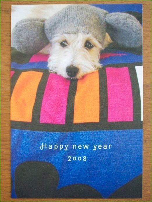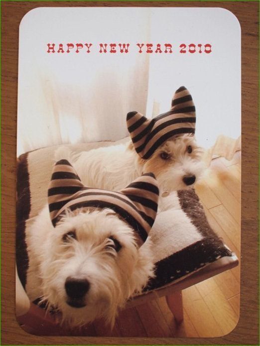 「帽子は作ったのですが、年賀状の写真用に嫌がるのを無理にかぶせました……。よくないですね、もうしません(笑)」(年賀状3点の写真提供:金森さん)