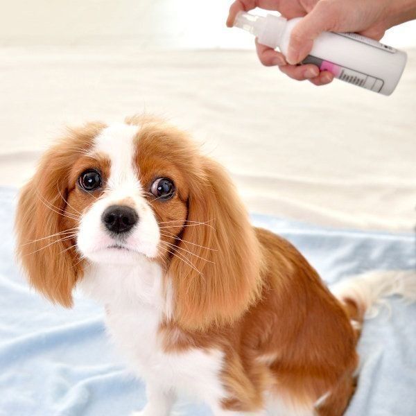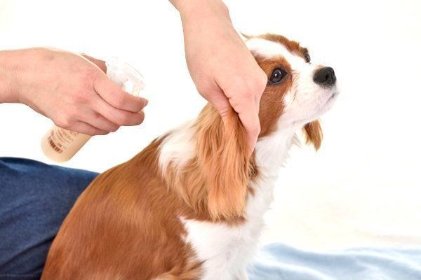 まずは、耳の後ろやしっぽのつけ根など、もつれやすい部分にはブラッシングスプレーを軽くかけます。
