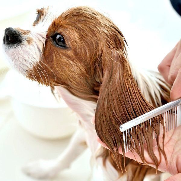 まずはブラッシングで抜け毛を取ったあと、シャンプーで皮脂と汚れを落とし、リンスをします。