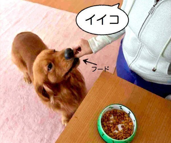 いつでも手を伸ばせるよう、1日に与えるフードのうち、ごほうび用を取り分けて愛犬が届かない場所に置いておき、イイコにできたときに与えてみましょう。
