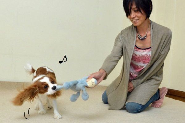 飼い主さんがおもちゃを生き物のように動かして愛犬を誘ってみましょう。