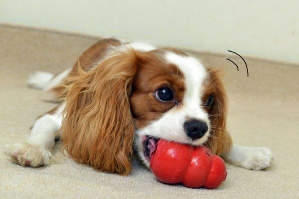犬は食いしん坊なので、たいていはこの方法で噛んでいたものを口から離し、フードに気を取られるはず。