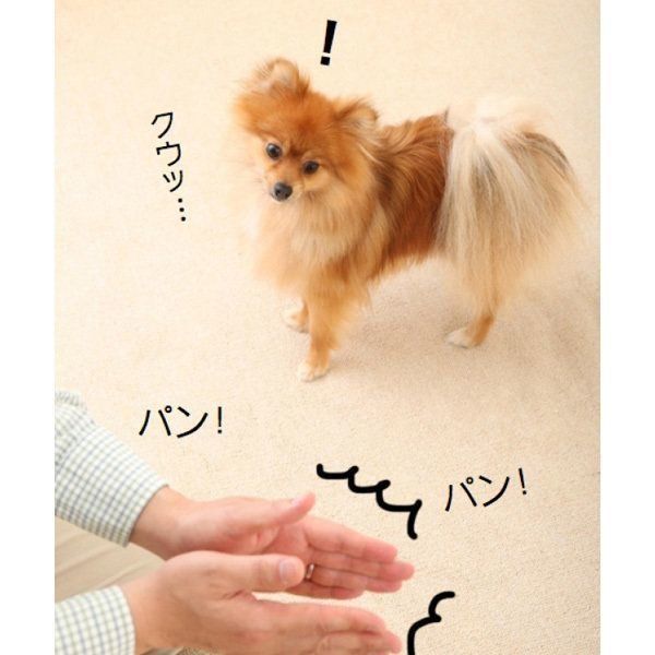 音に驚いた犬は、BADスイッチが切れて吠えやむはず。短くハッキリと手を打ち鳴らすのがコツです。