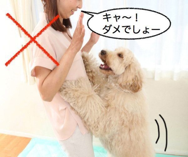 飛びつかれたときに大きな声で騒ぐと、愛犬は飛びつけばかまってもらえると学習してしまいます。