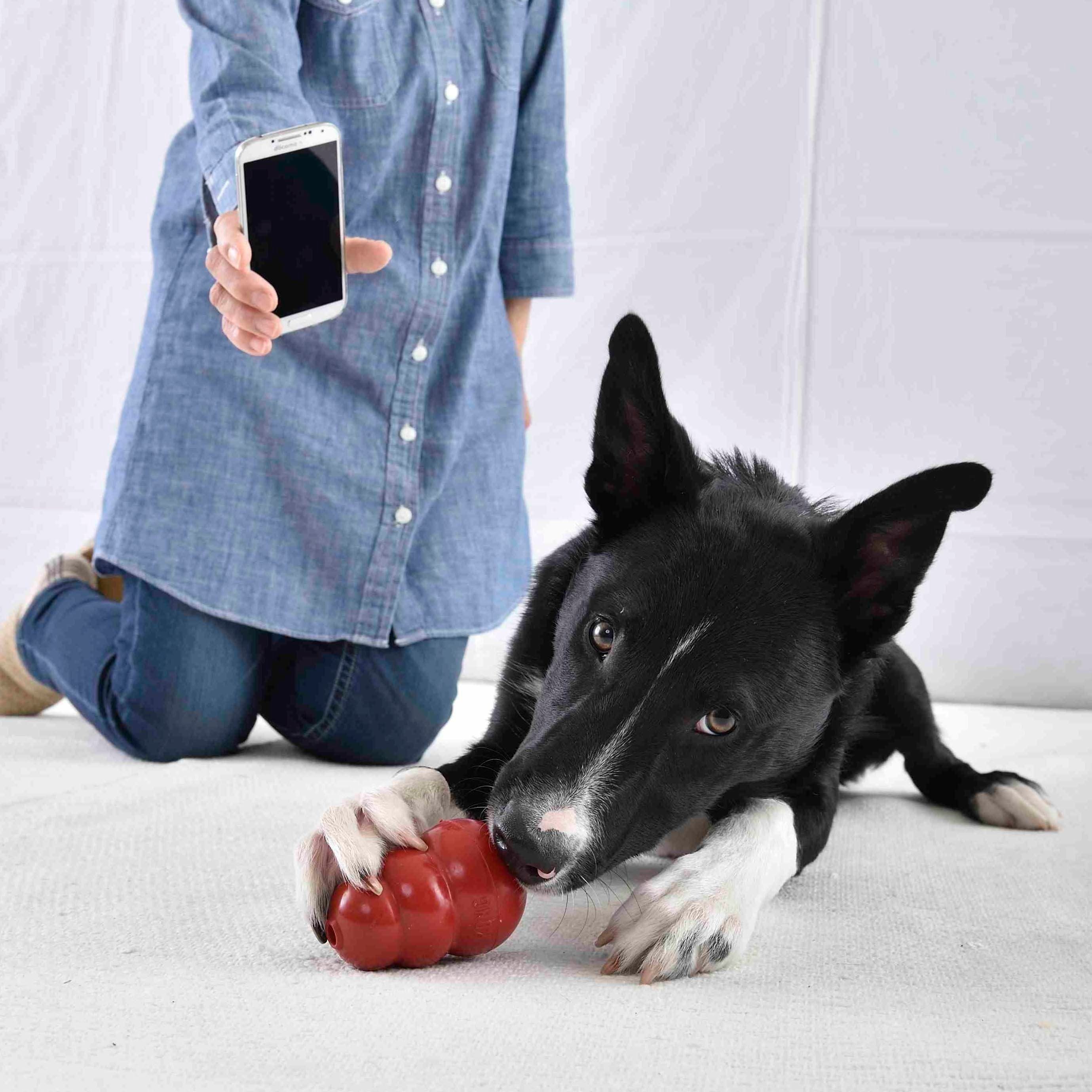 動く掃除機に慣れたら、部屋の隅など愛犬から離れた場所で掃除機の電源を入れ、音を出します。フードやおやつを入れたおもちゃを愛犬に与えながら、掃除機を徐々に近づけて慣らします。