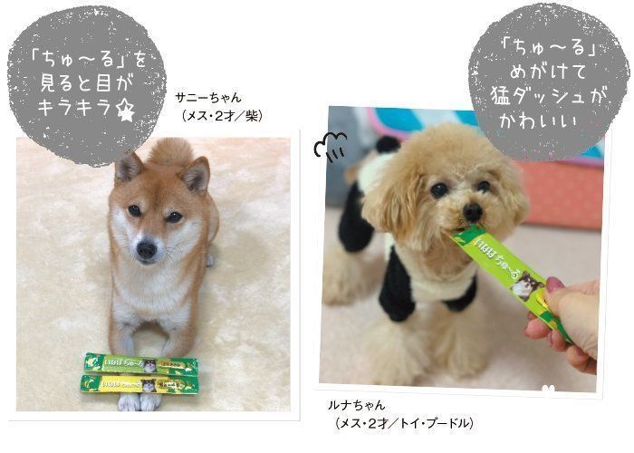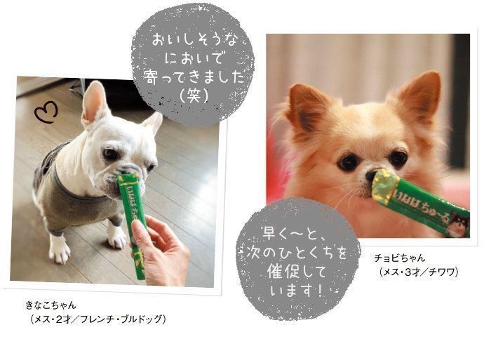 公園で会うお友達に「ちゅ~る」をもらってから、とっても気に入ったようで、パッケージを見せるとよいコにおすわり。ゴハンをスムーズに食べないときも「ちゅ~る」が重宝しています。