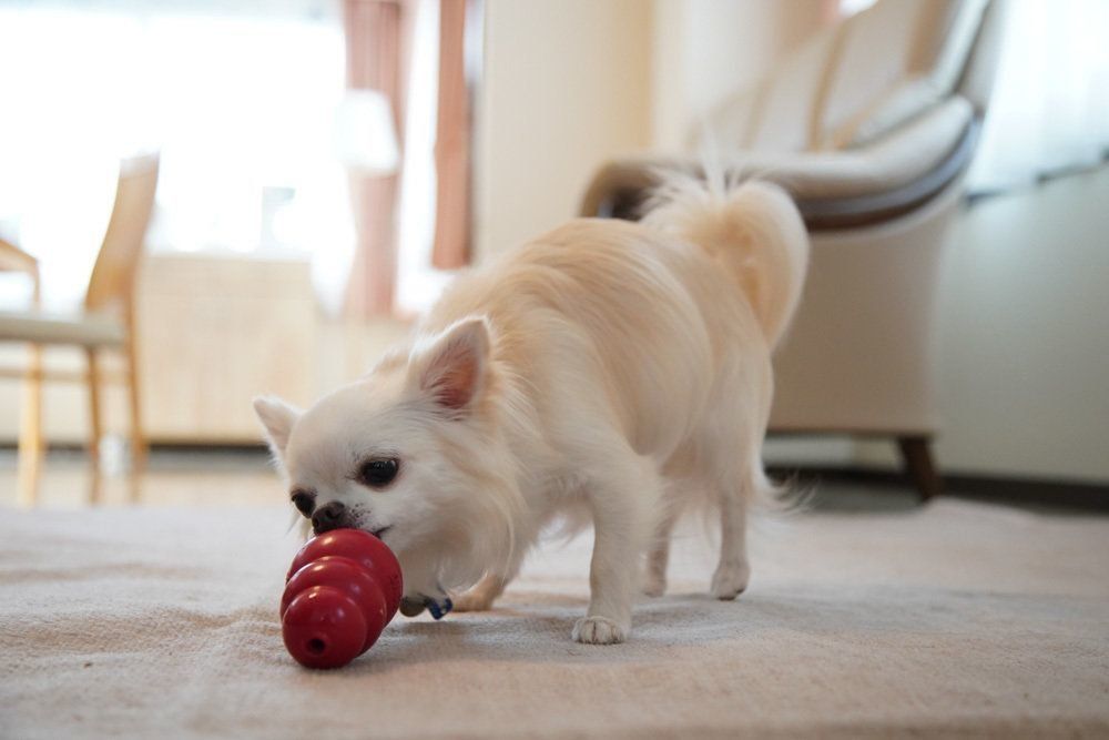 すると、ピタっと吠えやんで「ゴム製おもちゃ」に夢中になるので吠えにくくなるんです!