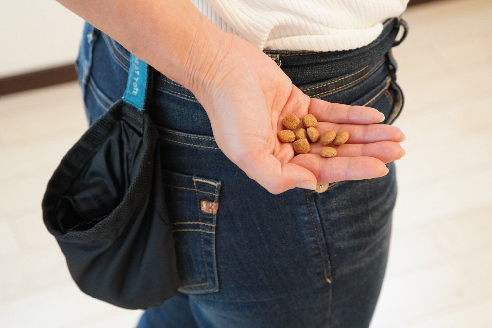 「トリーツポーチ」をご存じない方も多いと思いますが、これはわんちゃんのおやつやフードを入れておけるポーチのことです。このポーチはいつも飼い主さんの腰につけておけるため、わんちゃんが良い行いをしているときに、すぐにおやつを取り出して「今のよかったよ!」「それで合ってるよ」とほめられるんです。