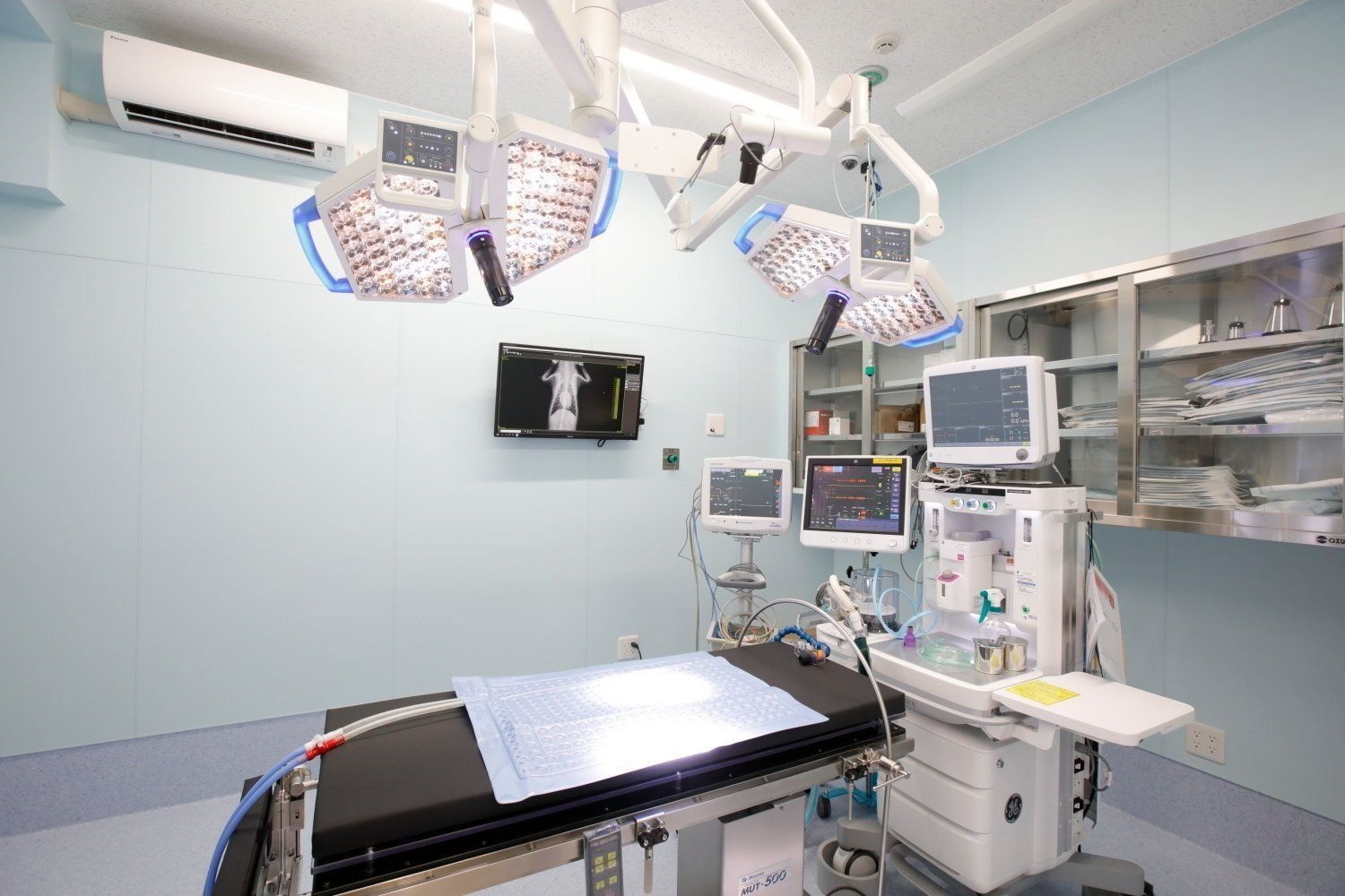検査から導き出された病状に応じて、治療や投薬、手術などの処置を行ないます。内科、外科手術は清潔度の高い手術室で行われ、飼い主さんは待合室のモニターで愛犬の様子を確認することもできます。