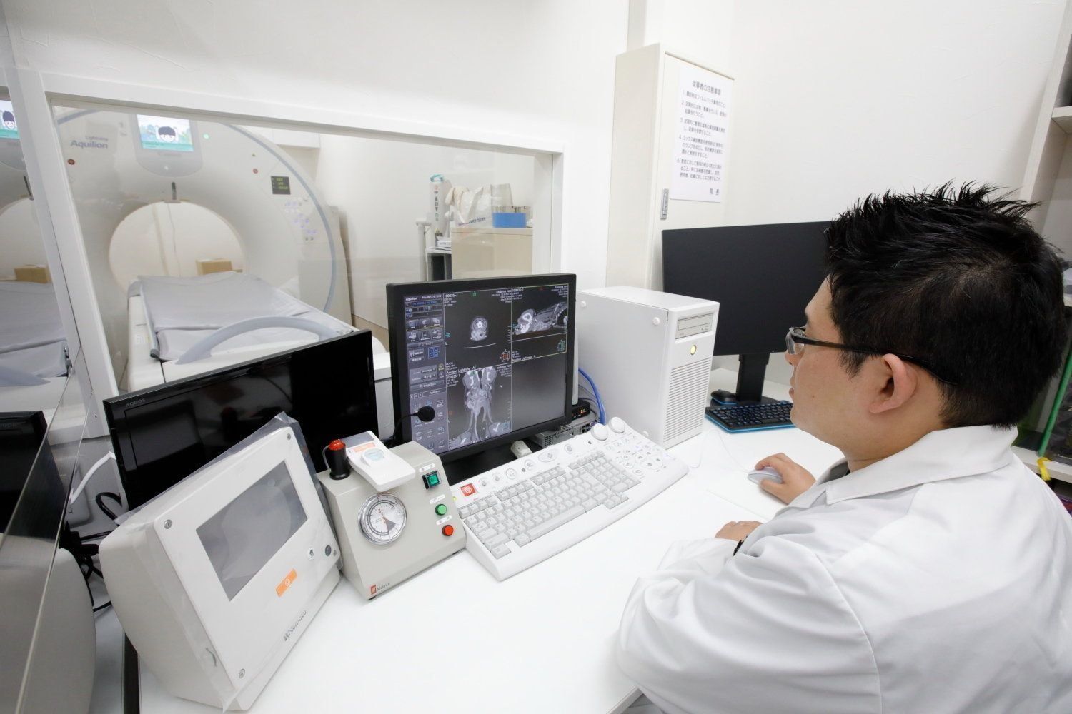 確定診断に必要な最新機器を揃えています。機器性能の向上により無麻酔でのCT撮影が可能になり、医療被曝によるリスクを最小限に抑えます。また、専門的な知識が必要な症例によってはCT画像を読影する専門医に依頼し、診断について助言をもらいます。