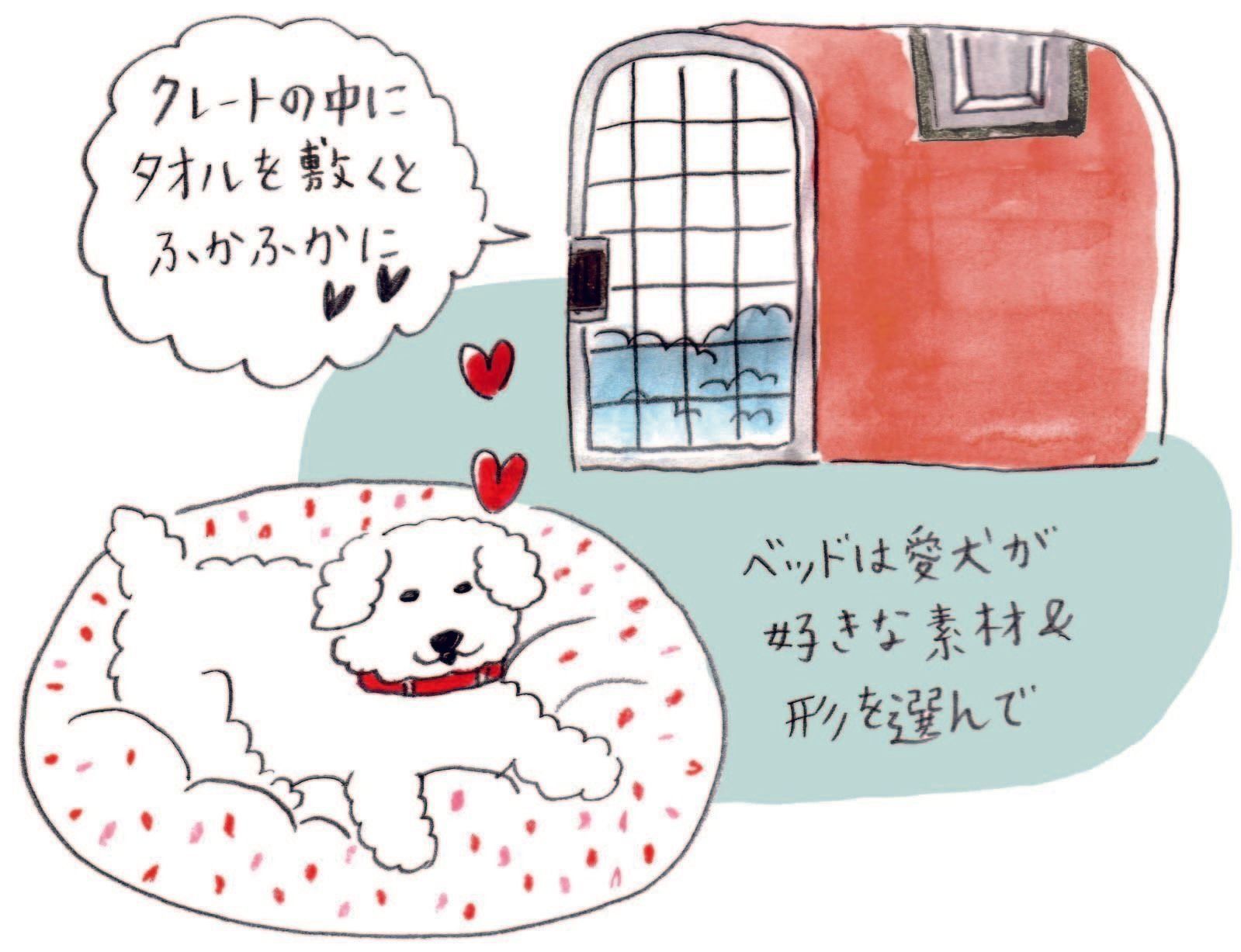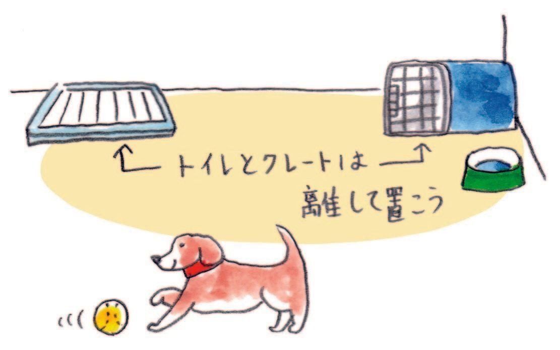また、犬は寝床から離れた場所で排泄をしたがるため、クレート(ハウス)とトイレは離して置くといい、ということも覚えておきましょう!