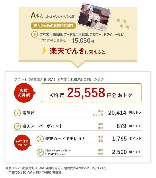 飼い主さんの負担をサポート!今なら「楽天でんきペット割」でもれなく2,500ポイントもらえる!