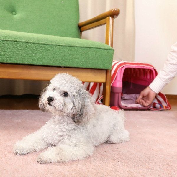 まるで家具やオブジェのようにクレートを置いておけば、いずれ愛犬はそれに見慣れ、とくに嫌がったりしなくなるはず。
