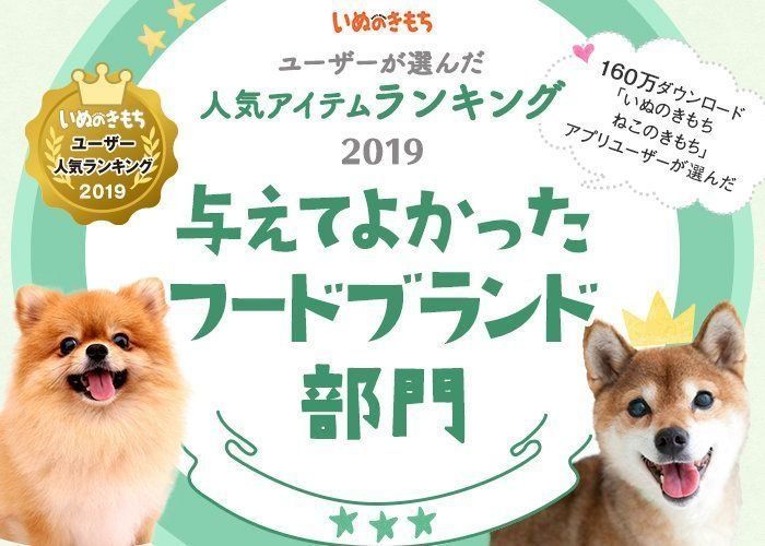 与えてよかったフードブランド部門ランキング いぬのきもちユーザー人気ランキング2019