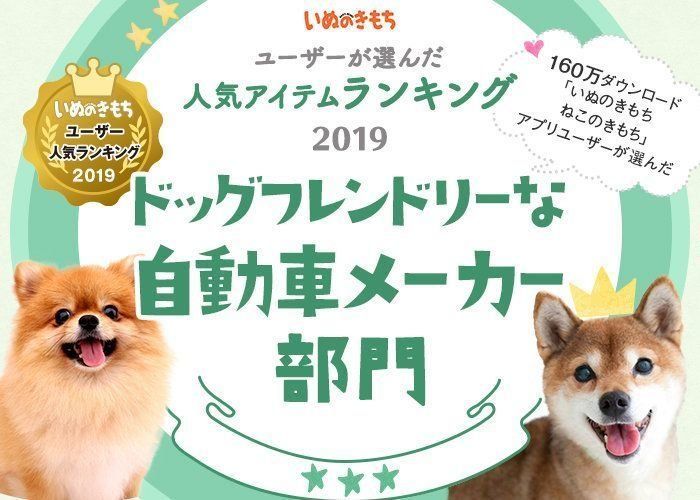ドッグフレンドリーな自動車メーカー部門ランキング いぬのきもちユーザー人気ランキング2019