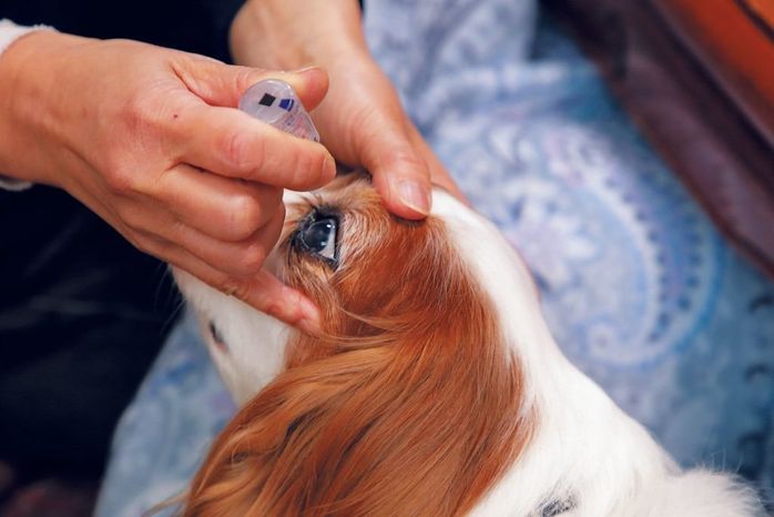 目薬をさすときも「目薬だよ」というと、さしやすいようにそばでオスワリをするのだそう。熱心な声がけで目の不自由を補っています。