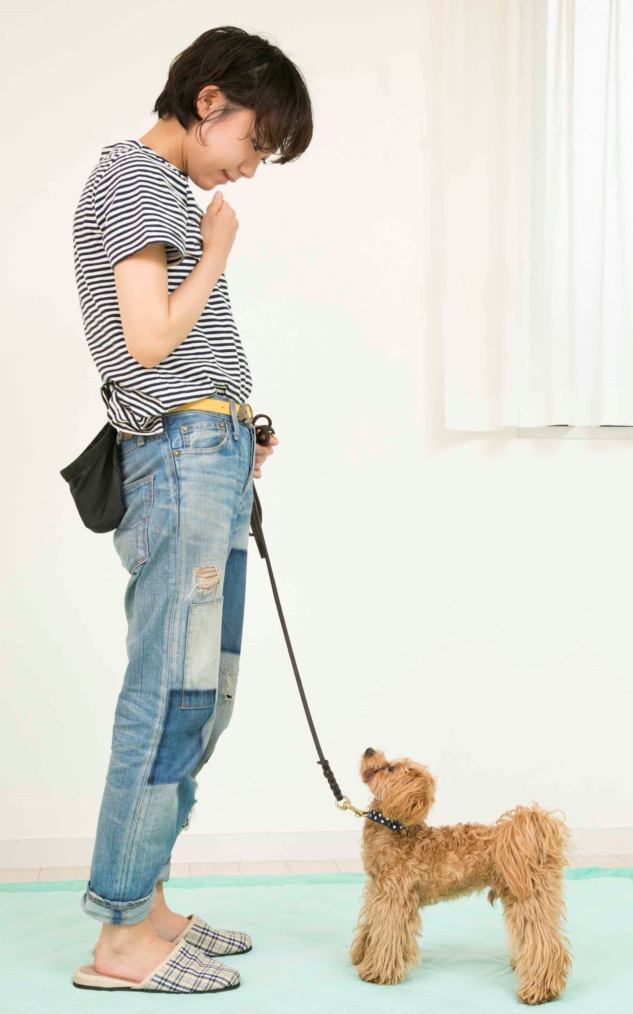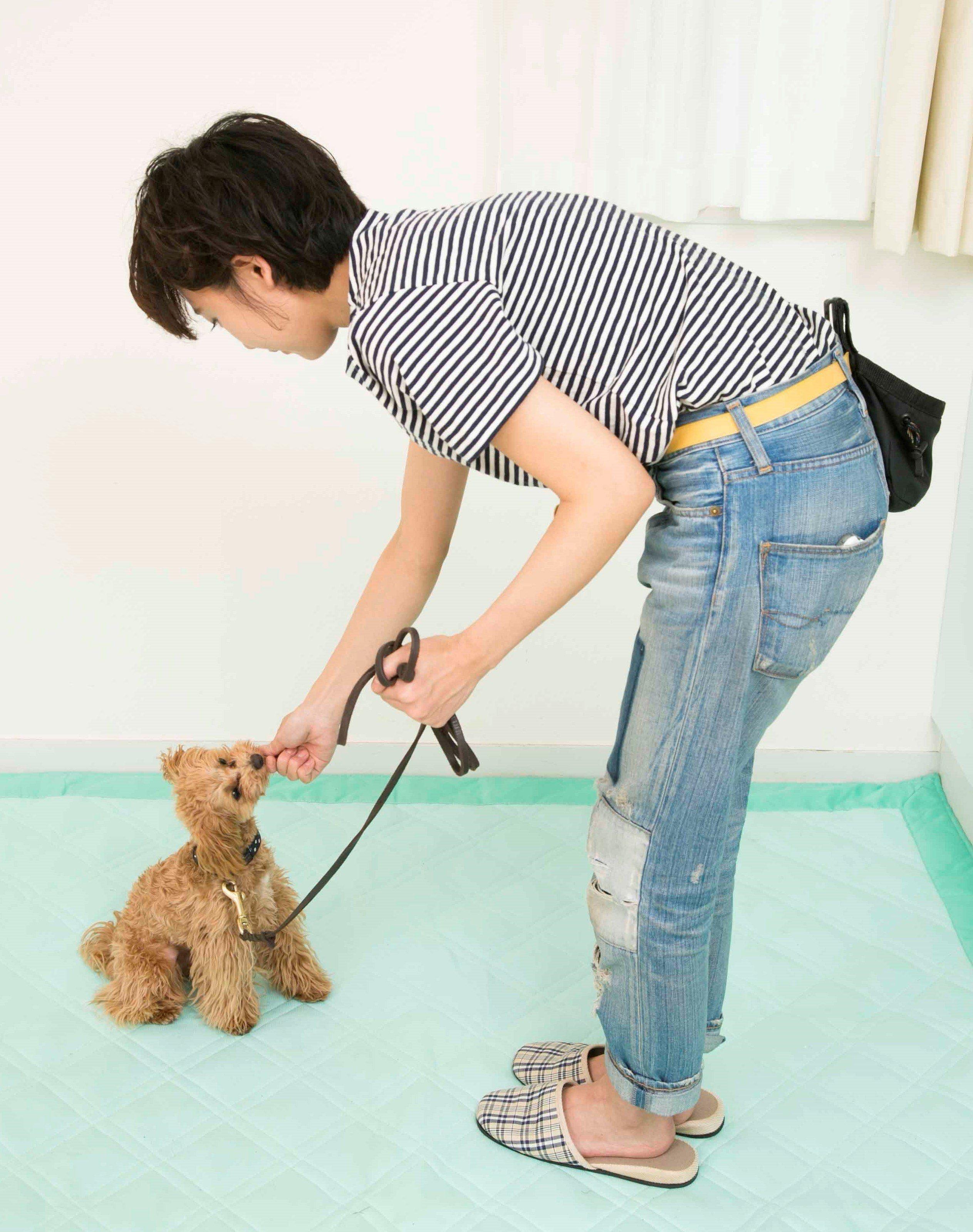 なお練習中は、愛犬が飼い主さんのそばから離れると、そのたびに練習が中断されて時間がかかってしまうので、家の中でもリードをつけて練習するようにしましょう。