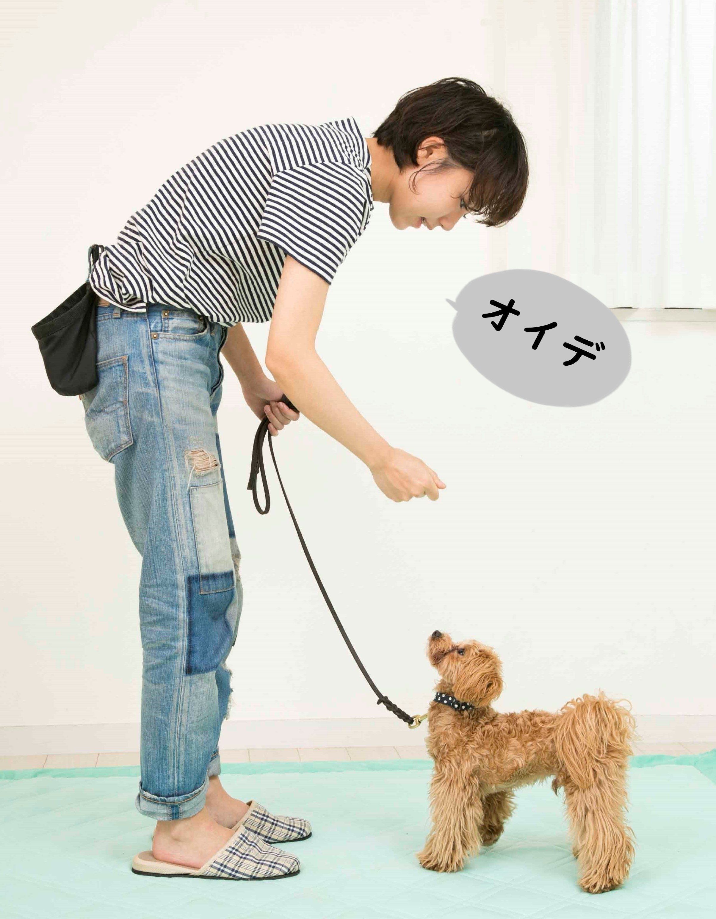 飼い主さんの足元まで来させるしつけ「オイデ」