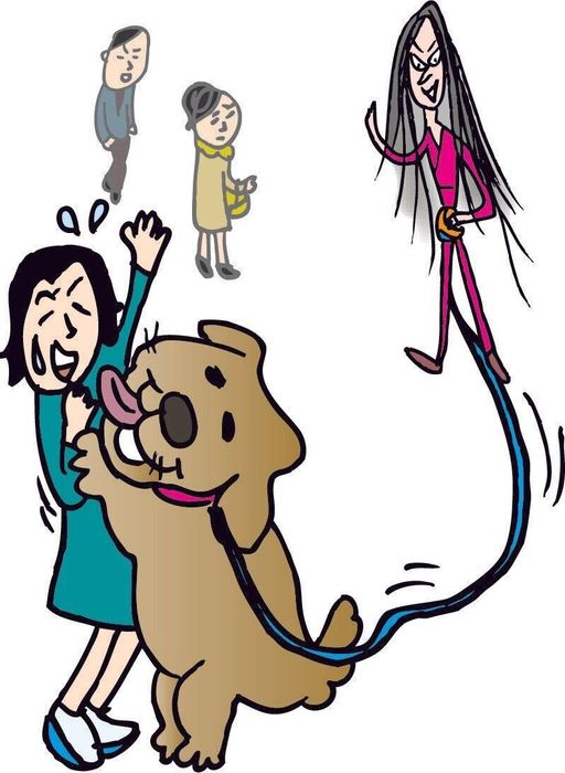 犬をノーリードにして放ち、人に迷惑をかけても犬を呼び戻すこともできない、非常に質の悪い妖怪「ヒモなし」です。