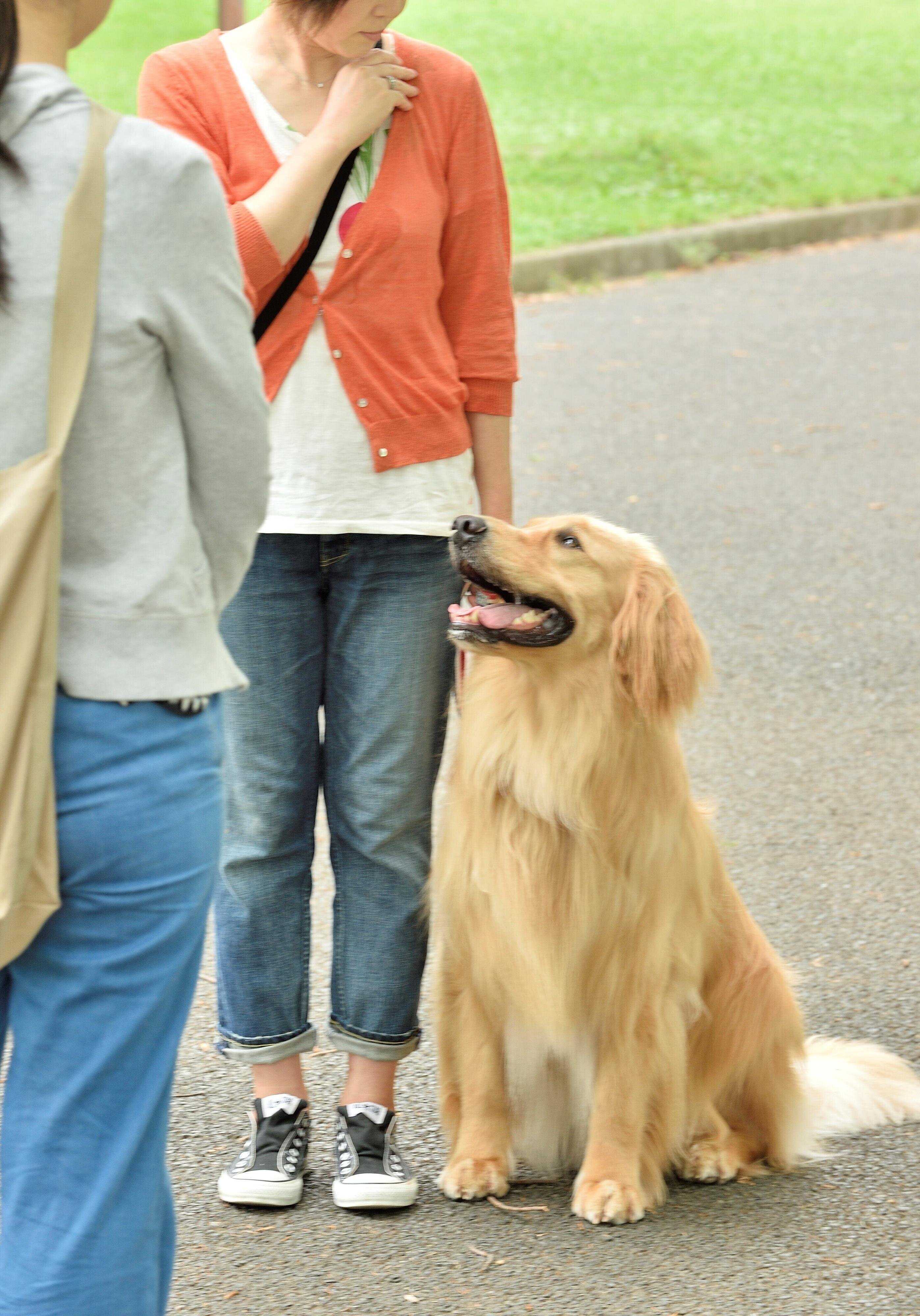 2の状態でしばらくいられたら、「OK」と声をかけてマッテを解除。もし通行人の人が犬好きで、触れ合いたいと声をかけてもらったのであれば、通行人からほめてもらってもよいでしょう。「落ち着いたらほめてもらえる」と犬に伝えることができます。