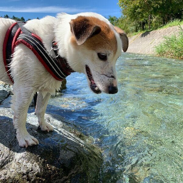 毎日の散歩に加え、食べる、寝る、ふれあうが元気の源