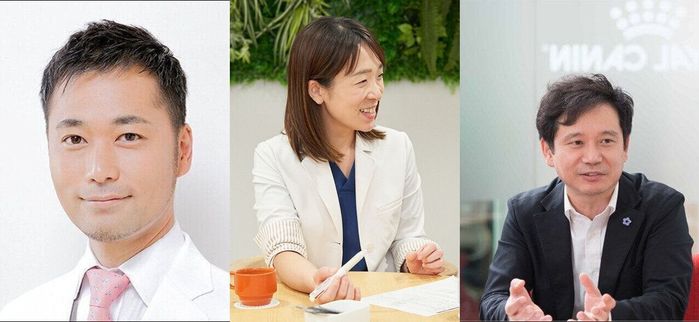 上野弘道院長先生・冨田夏子先生(以上、日本動物医療センター 獣医師)、原田洋志先生(ロイヤルカナンジャポン 獣医師)