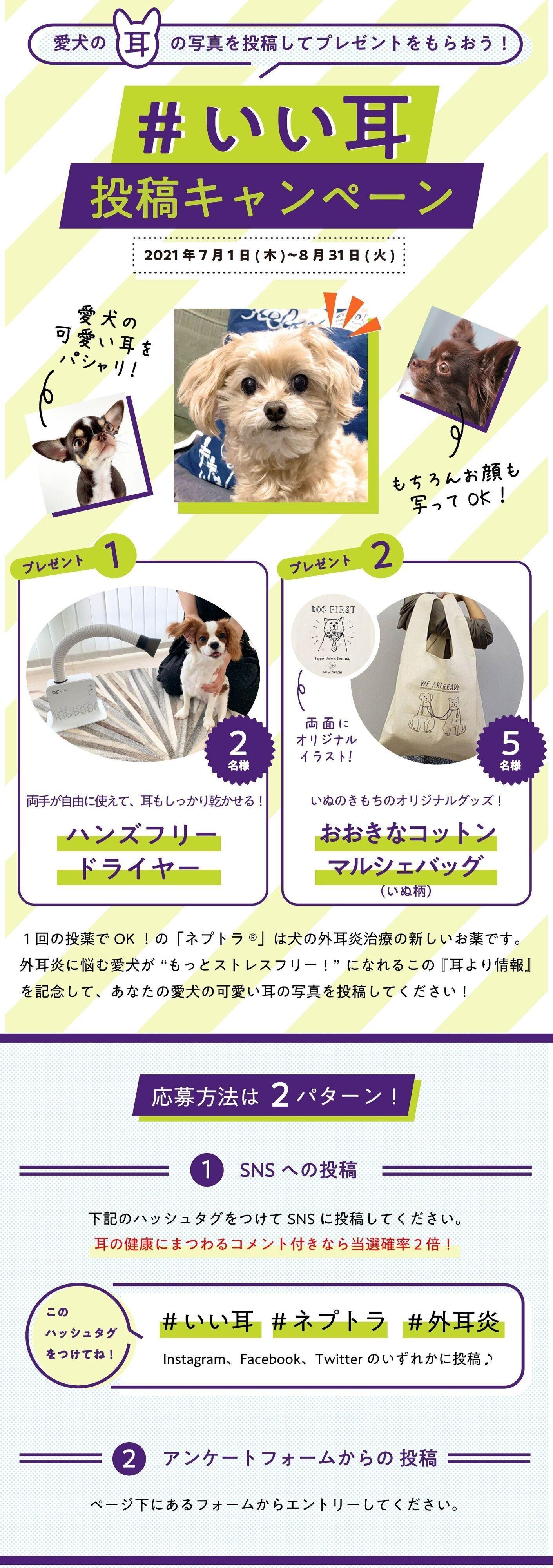 「#いい耳 #ネプトラ #外耳炎」をつけて、愛犬の耳の写真と耳の健康にまつわるエピソードを投稿された方の中から合計7名様に豪華景品をプレゼント!