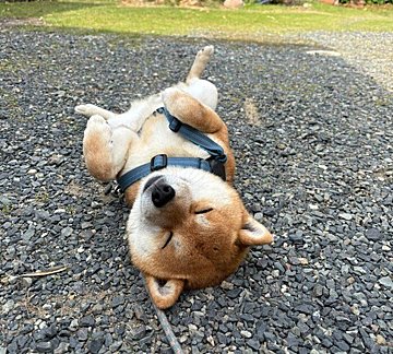 散歩後に庭で“ヘソ天拒否柴”をする福ちゃん。リラックスとお留守番前の切なさが伝わる朝の光景にほっこり。気になる心理などについて、獣医師が解説します。